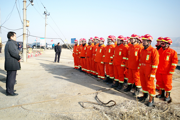 1月20日16時30分,省突發(fā)地質(zhì)災(zāi)害應(yīng)急排查突擊總隊接到省環(huán)保廳環(huán)境污染應(yīng)急救援指令。經(jīng)請示集團(tuán)公司黨委書記、董事長、突擊總隊領(lǐng)導(dǎo)小組組長趙廷周同意,即時啟動應(yīng)急響應(yīng)。17時10分,集團(tuán)公司副總經(jīng)理、突擊總隊指揮長馬貴鎖率突擊總隊辦公室、渭南支隊、商洛支隊30名突擊隊員,攜帶相關(guān)應(yīng)急救援物資和設(shè)備,分乘8輛應(yīng)急救援車,從西安、渭南、臨潼3地迅速向渭南市合陽縣洽川鎮(zhèn)集結(jié)。